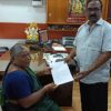 The Managing Director of Jayapriya Group presented an Insurance claim amount of 15 lakhs to the mother of the deceased Tiruvarur Branch Manager, Thiagarajan.